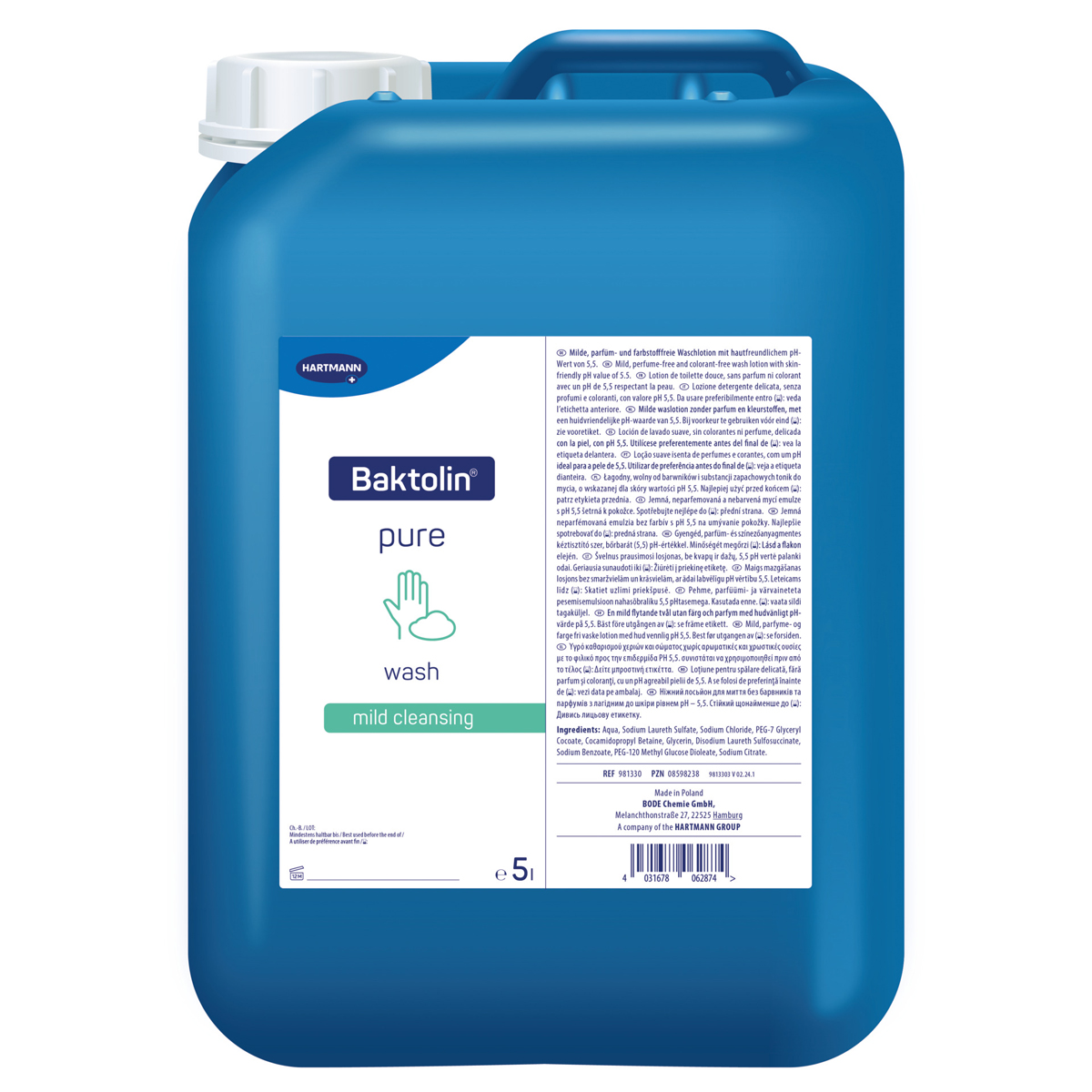 Baktolin pure verfügt über einen hautneutralen pH-Wert, der zusammen mit den hautmilden Tensiden für schonende Reinigung und den Erhalt des natürlichen Säureschutzmantels der Haut sorgt.