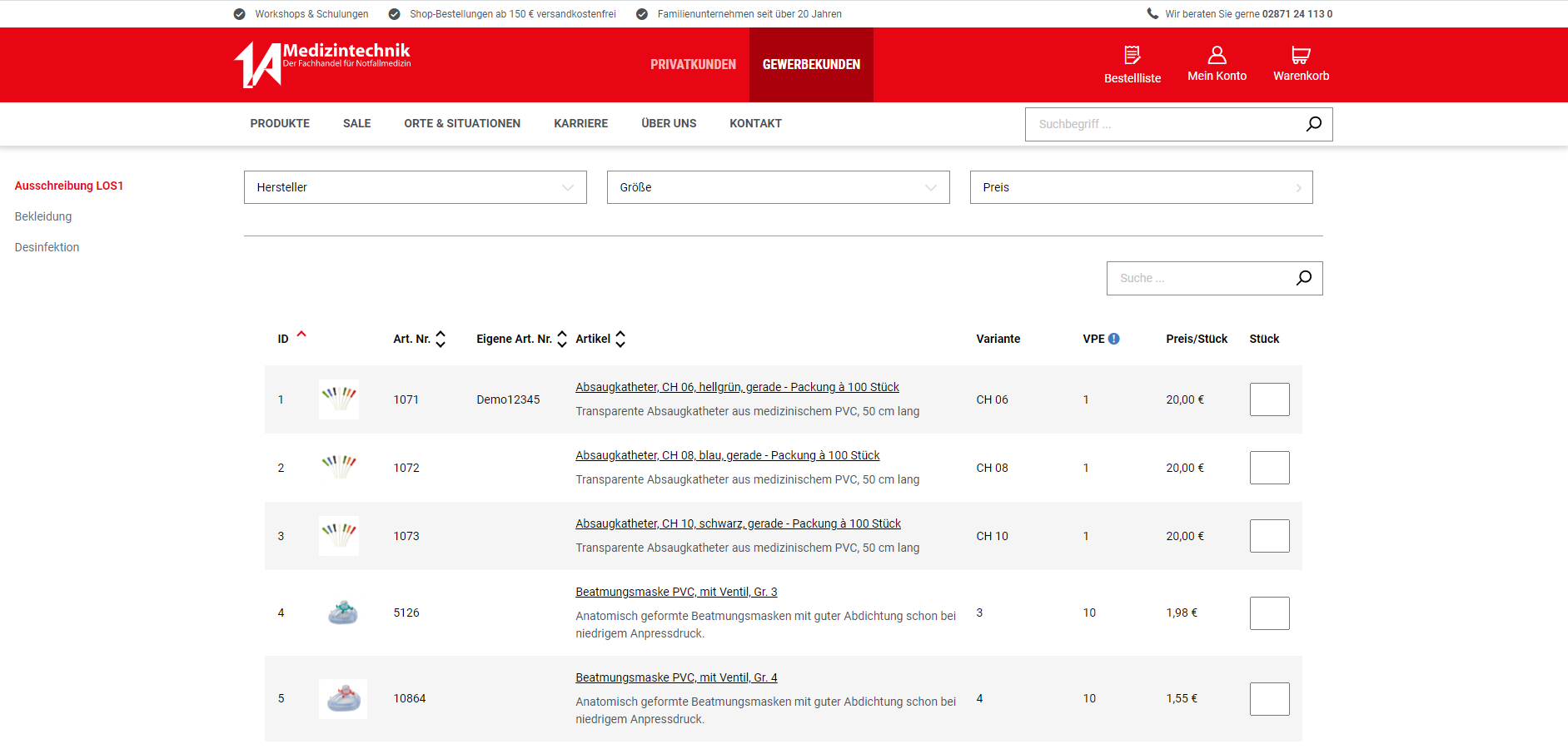 Wir entwickeln unseren Online-Shop in enger Zusammenarbeit mit unseren Kund*innen kontinuierlich weiter. Ziel ist es, Ihre Anforderungen für einen effizienten Bestellprozess optimal abzubilden.