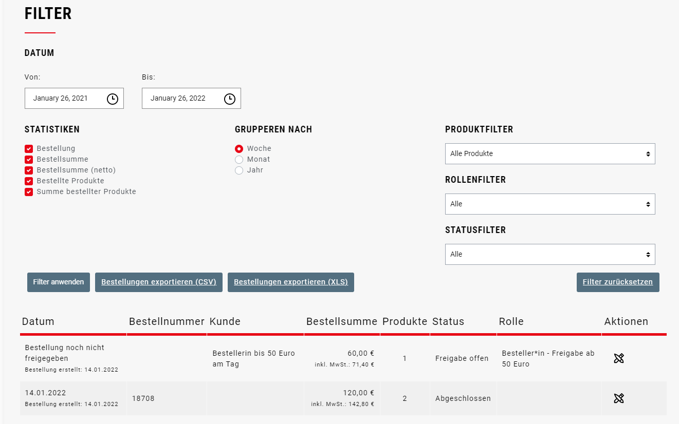 (Filterbar und Exportierbar nach Benutzergruppen, Produkten, Zeiträumen, u.v.m.) - Kunden-Artikelnummern